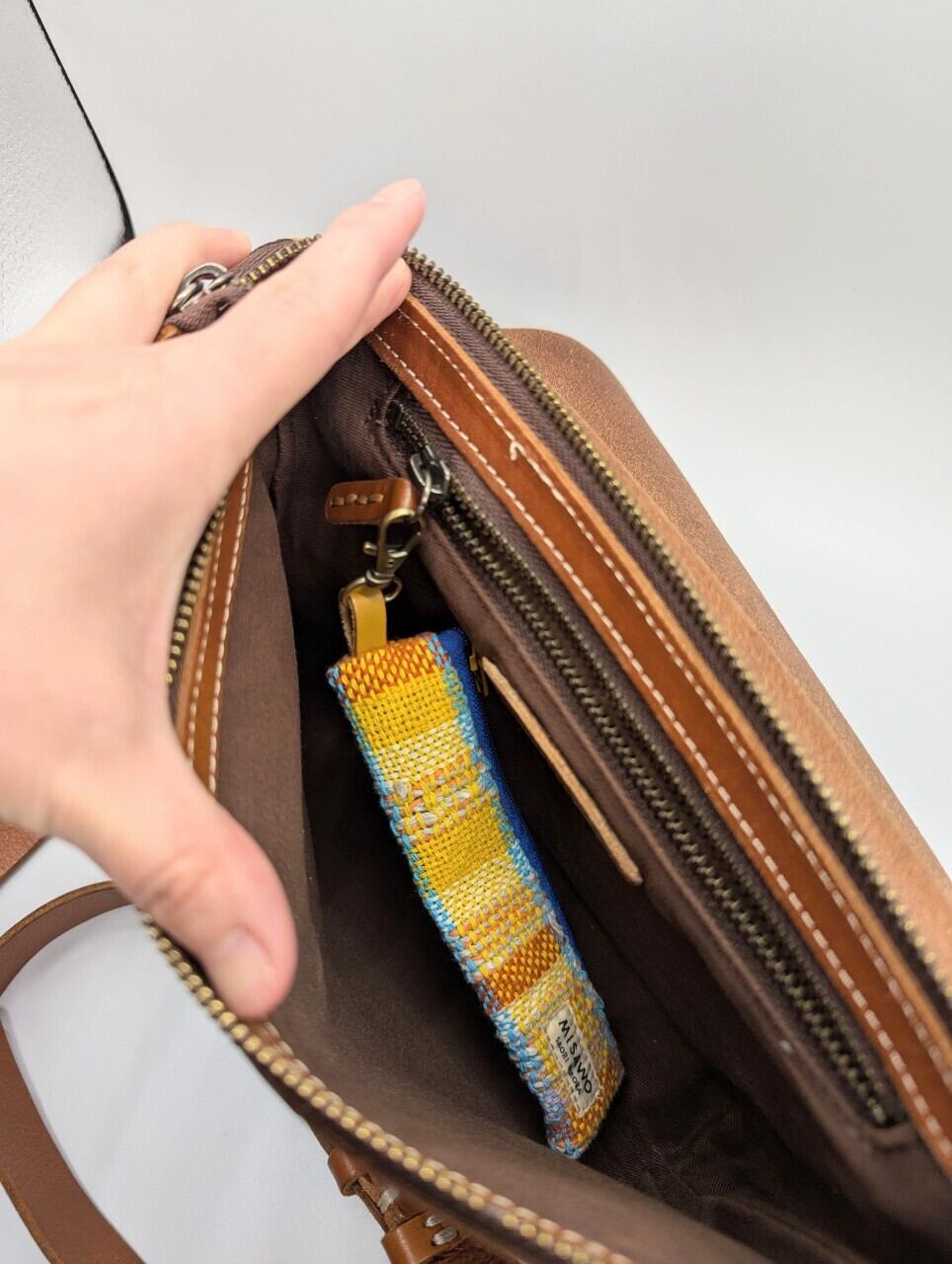 ナスカン付きのちょうどペンが一本入るペンケース。