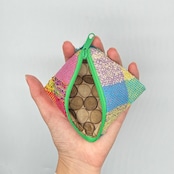 さをり織りのかわいいコインケースです。カパッと開けやすい形。