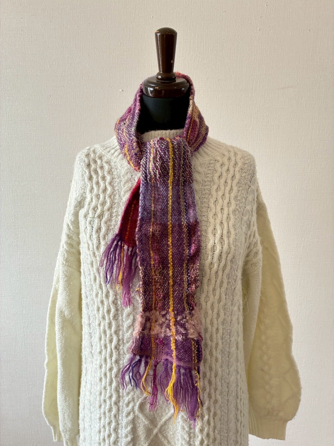 ウールで織った、軽くて暖かいさをり織りのマフラーです。
