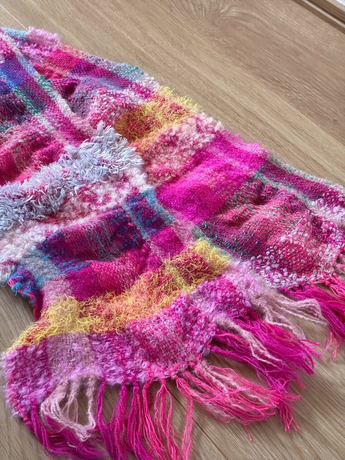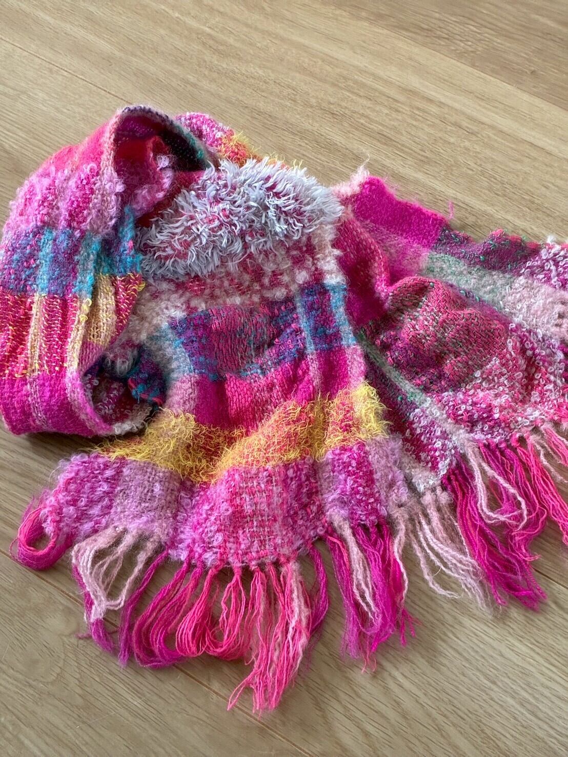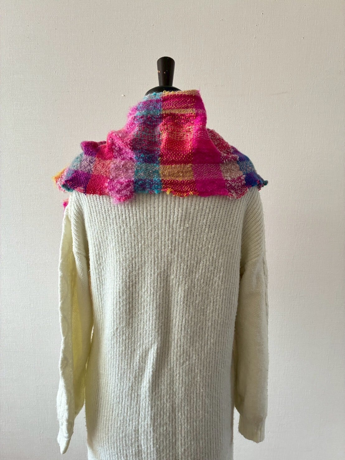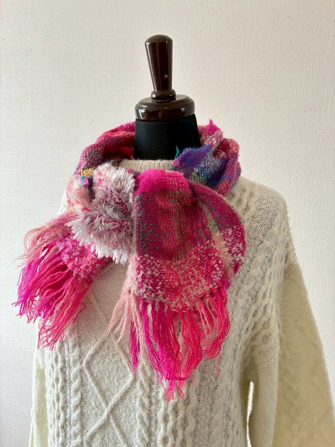 ウールで織った、軽くて暖かいさをり織りのマフラーです。