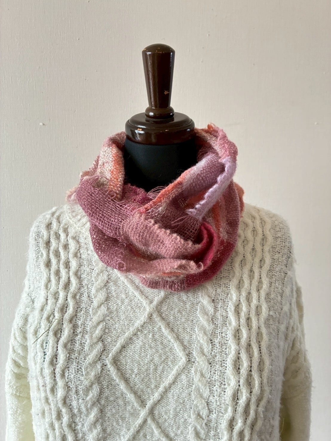 素材や織りの力加減、縮絨の具合により、織巾は一定ではありません。そこも手作りの味わいとして愛でてください。ノークレーム、ノーリターンでお願いします。