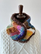 さをり織りとボアを使ったスヌードです。今年は、磁石で止めるタイプ。サッと留められて使いやすい。