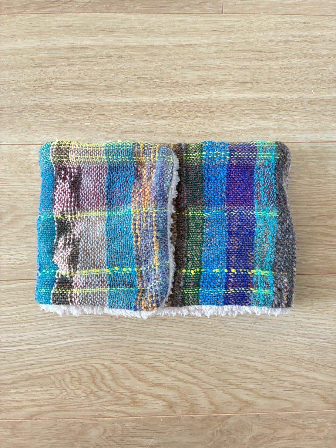 織生地はウール中心の素材で軽くて暖かです。手作り感のあふれる素朴なテイストとカラフルな色合いがとても可愛いです。