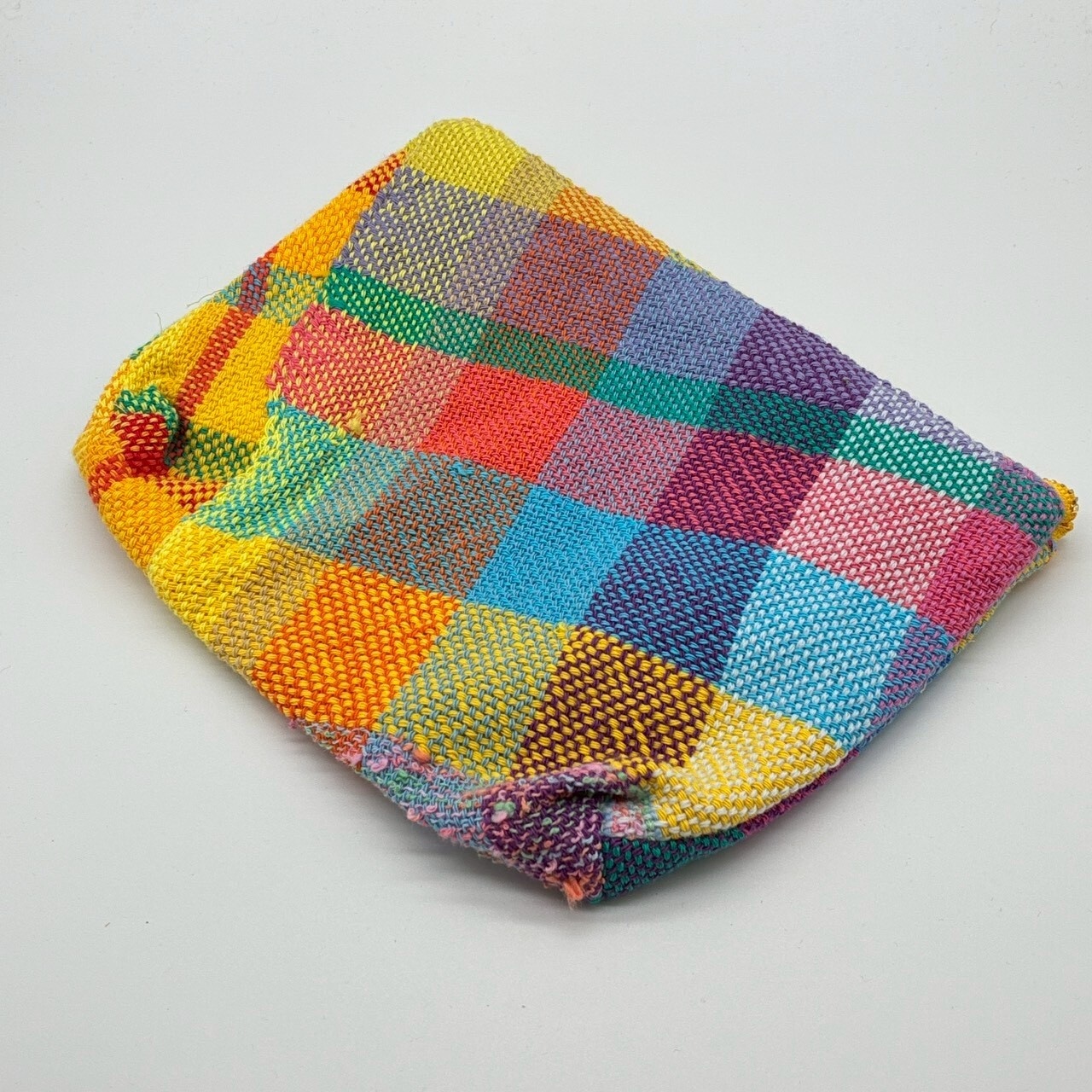 さをり織りのかわいいファスナーポーチです。一つ一つ色柄が違います。