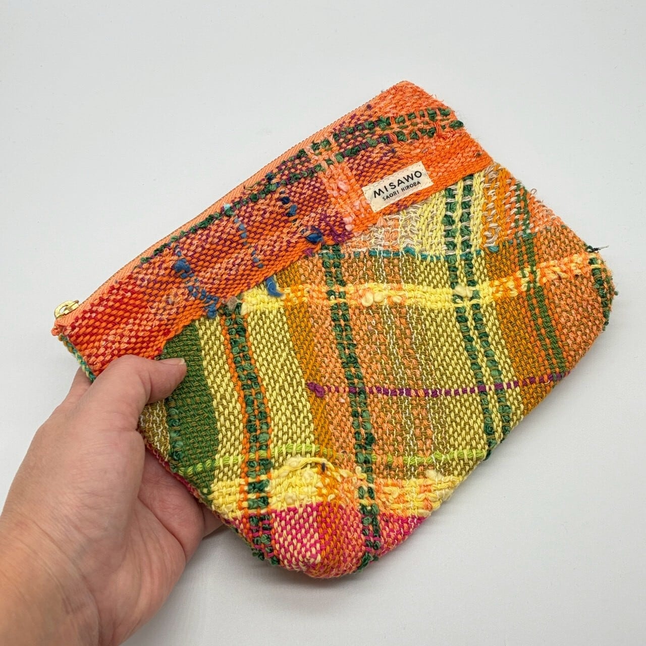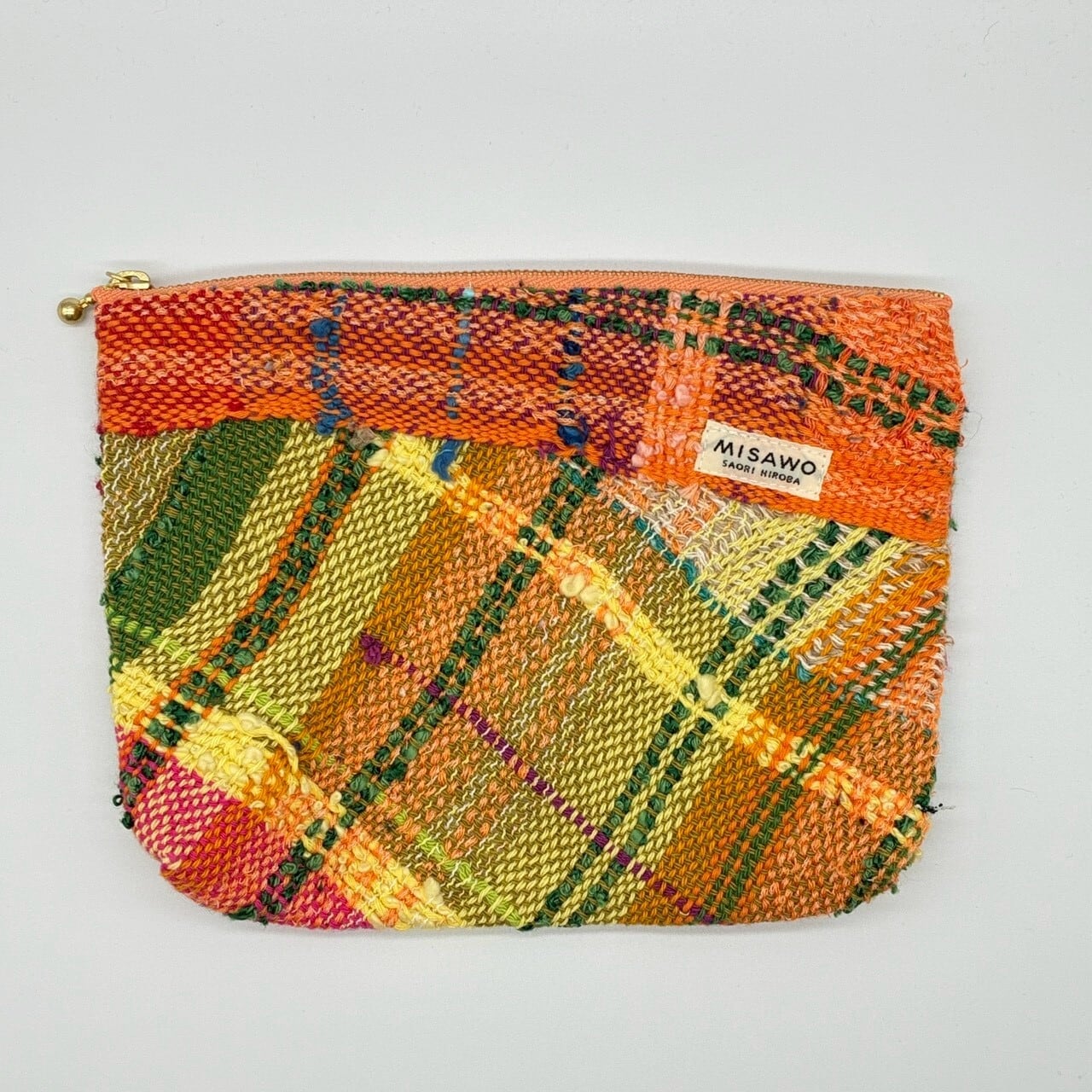 さをり織りのかわいいファスナーポーチです。一つ一つ色柄が違います。