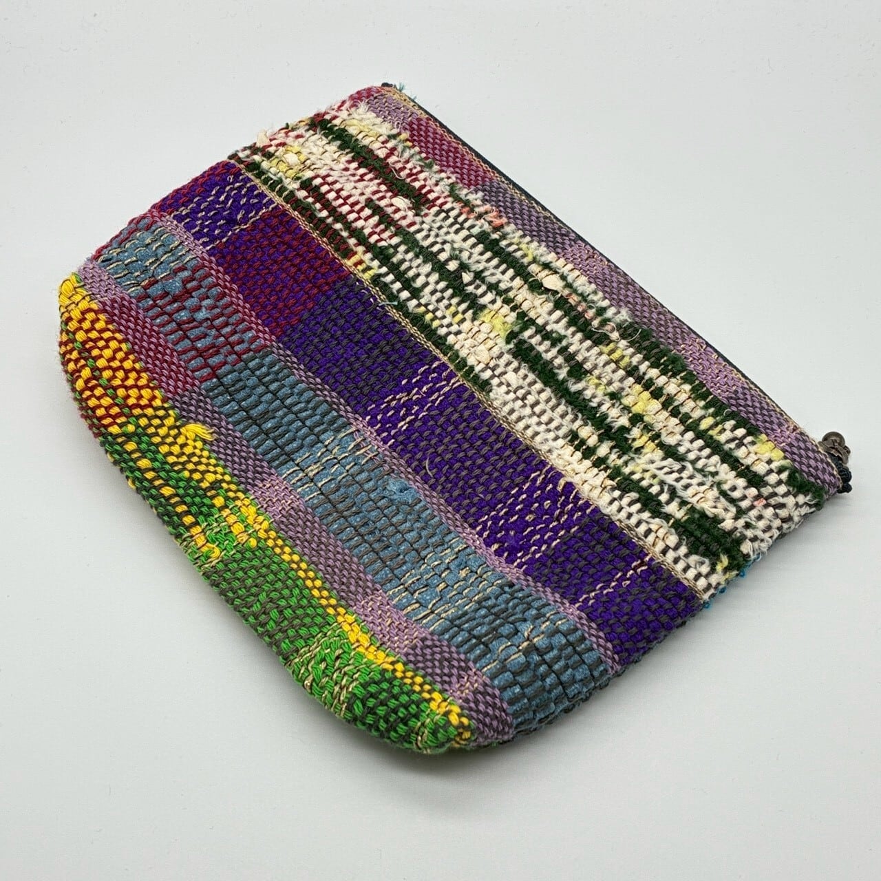 さをり織りのかわいいファスナーポーチです。一つ一つ色柄が違います。