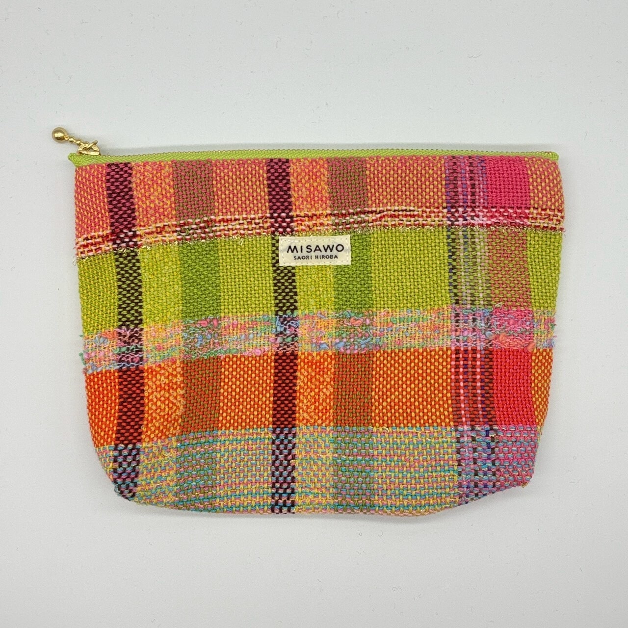 さをり織りのかわいいファスナーポーチです。一つ一つ色柄が違います。