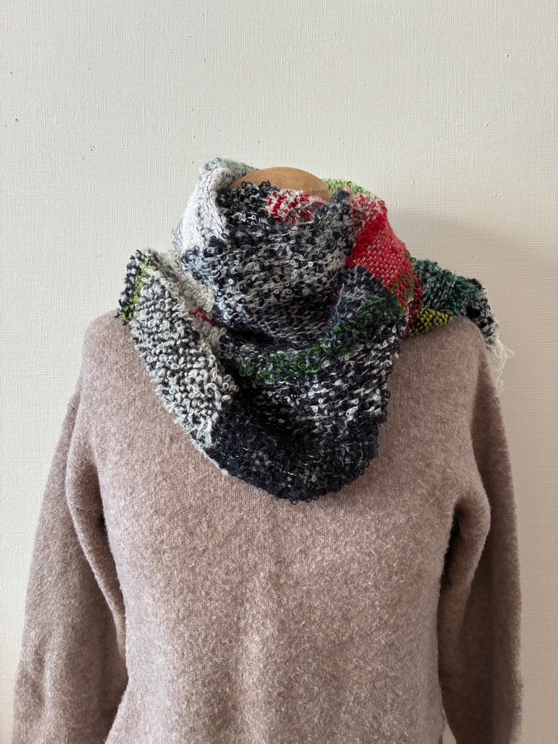 輪のになる形で織っています。メビウスマフラーと呼びます。