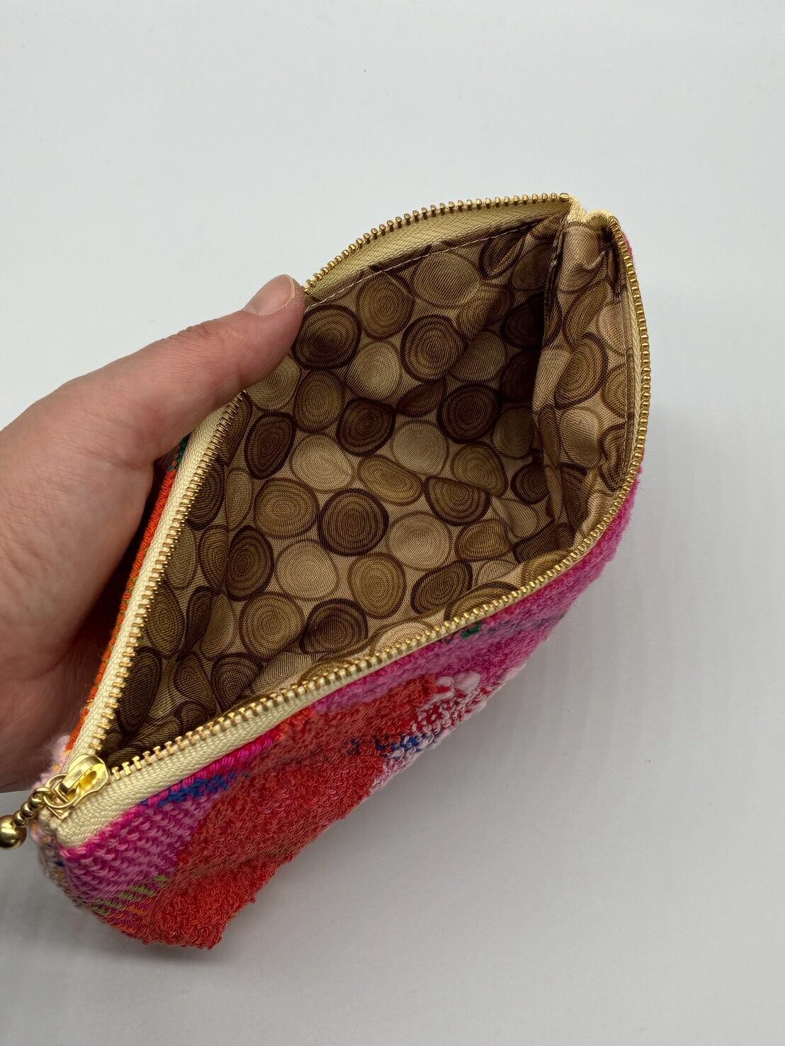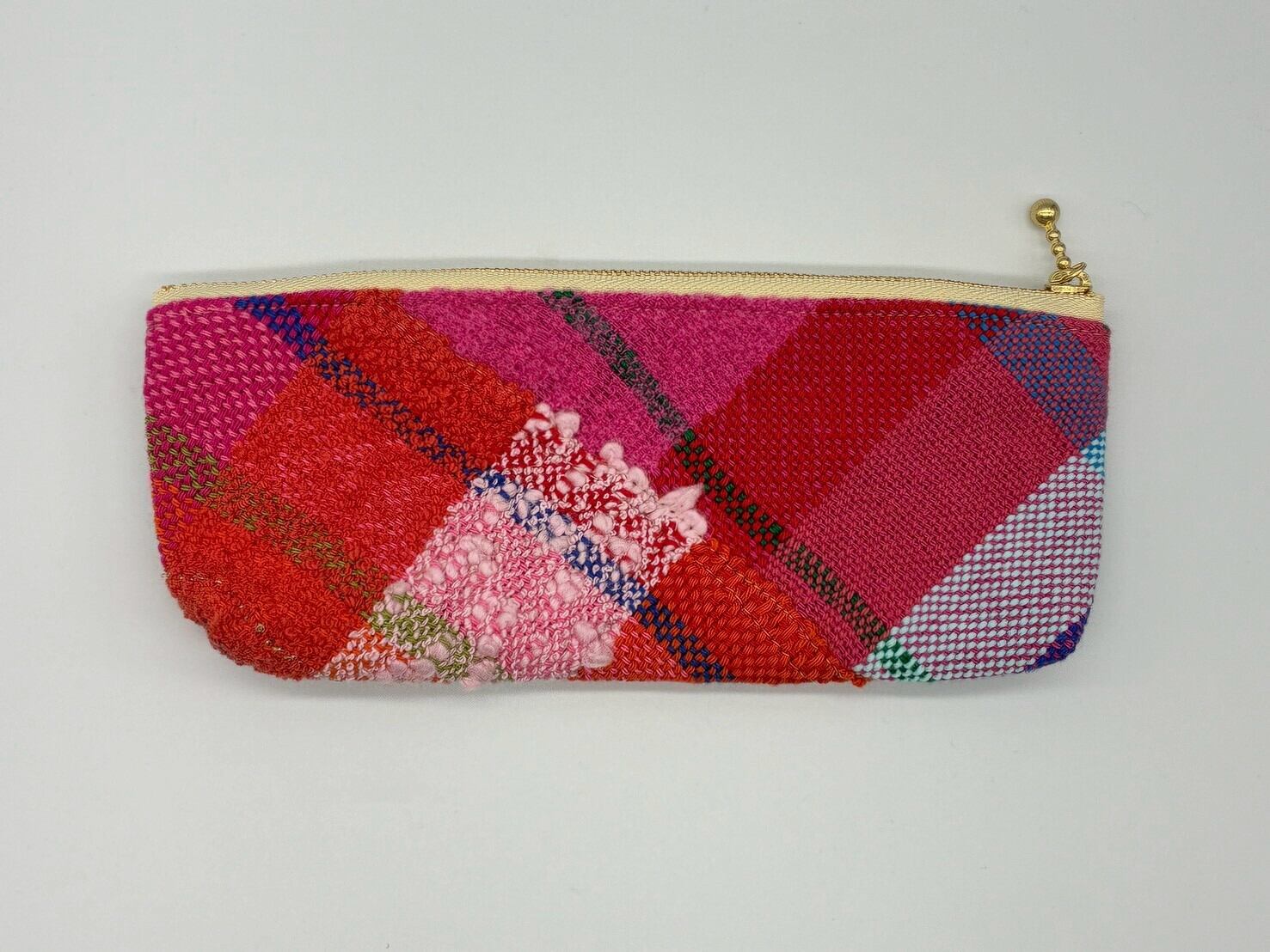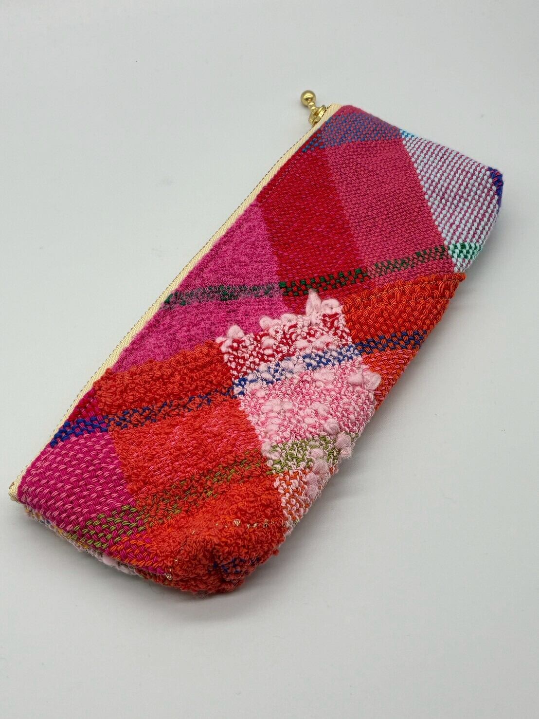 さをり織りのペンケースは、さりげないかわいらしさが魅力。どんなスタイルにも合わせやすく、オフィスや学校、または普段使いにもピッタリです。