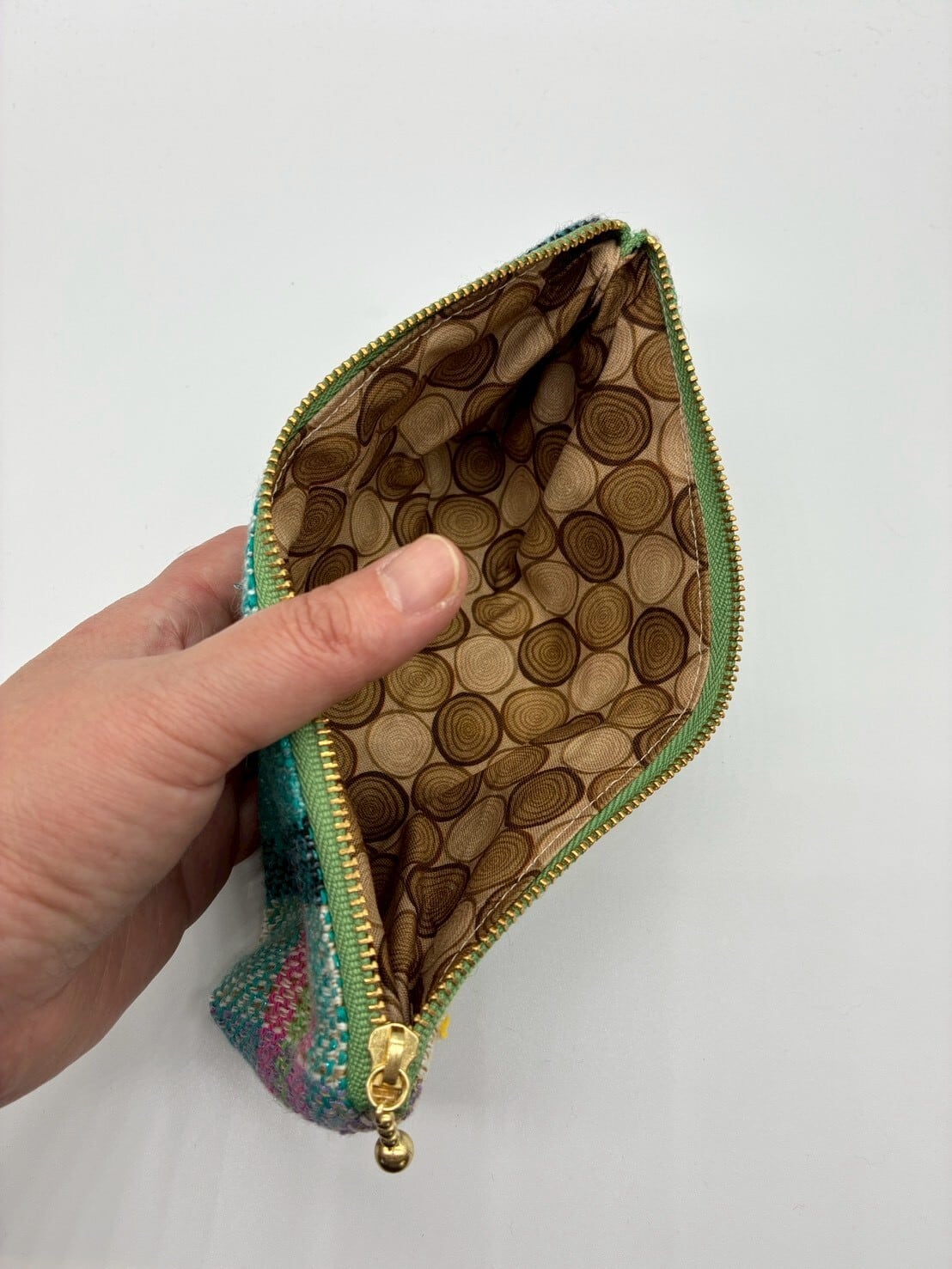 さをり織りのペンケースは、さりげないかわいらしさが魅力。どんなスタイルにも合わせやすく、オフィスや学校、または普段使いにもピッタリです。