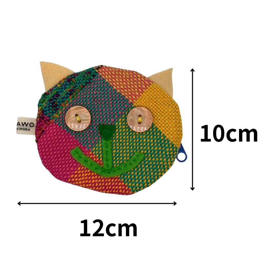 さをり織りのかわいい小さめねこポーチです。品番MNP-0025