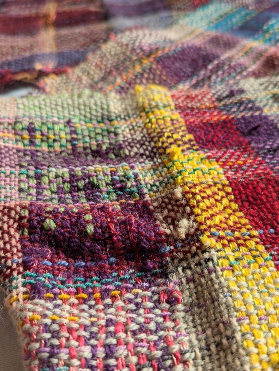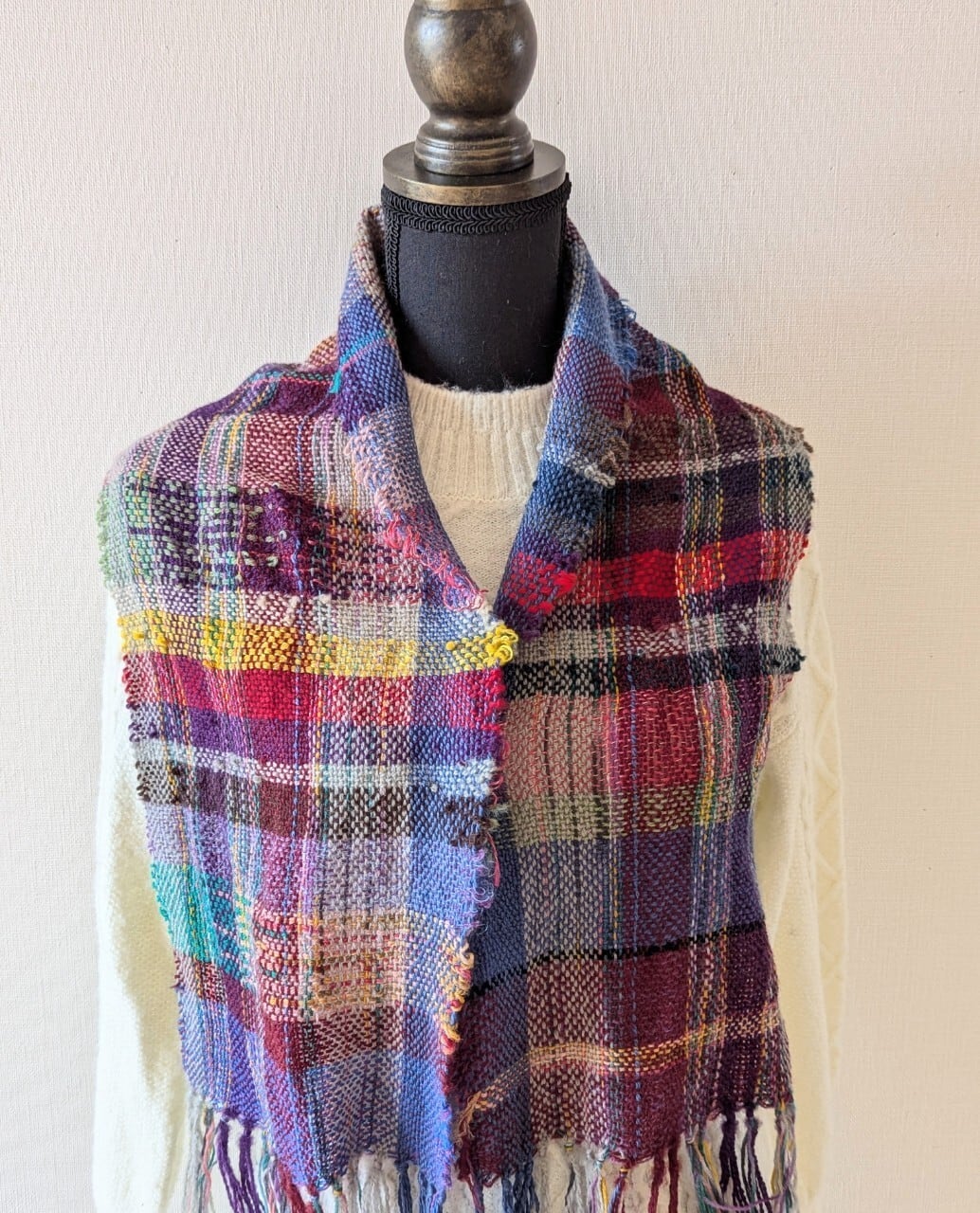 ウールで織った、軽くて暖かいさをり織りのマフラーです。